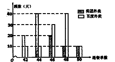 【题文】美团外卖和百度外卖两家公司其“骑手”的日工资方案如下:美团外卖规定底薪70元,每单抽成1元;百度外卖规定底薪100元,每日前45单无抽成,超出45单的部分每单抽成6元,假设同一公司的“骑手”一日送餐单数相同,现从两家公司个随机抽取一名“骑手”并记录其100天的送餐单数,得到如下条形图: