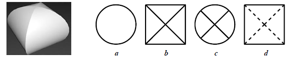 【题文】“牟合方盖”是我国古代数学家刘徽在研究球的体积的过程中构造的一个和谐优美的几何体.它由完全相同的四个曲面构成,相对的两个曲面在同一个圆柱的侧面上,好似两个扣合(牟合)在一起的方形伞(方盖).其直观图如下左图,图中四边形是为体现其直观性所作的辅助线.其实际直观图中四边形不存在,当其正视图和侧视图完全相同时,它的正视图和俯视图分别可能是( )