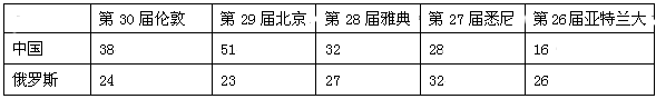【题文】第31届夏季奥林匹克运动会将于2016年8月5日—21日在巴西里约热内卢举行.下表是近五届奥运会中国代表团和俄罗斯代表团获得的金牌数的统计数据(单位:枚).