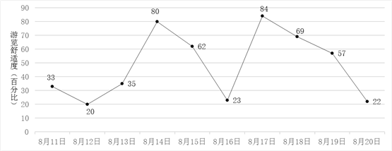 【题文】小明计划在8月11日至8月20日期间游览某主题公园.根据旅游局统计数据,该主题公园在此期间“游览舒适度”(即在园人数与景区主管部门核定的最大瞬时容量之比,40%以下为舒适,40%—60%为一般,60%以上为拥挤)情况如图所示.小明随机选择8月11日至8月19日中的某一天到达该主题公园,并游览2天.