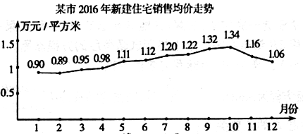 【题文】据某市地产数据研究的数据显示,2016年该市新建住宅销售均价走势如下图所示,为抑制房价过快上涨,政府从8月份开始采取宏观调控措施,10月份开始房价得到很好的抑制.