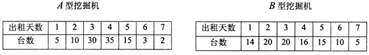 【题文】某工程设备租赁公司为了调查A,B两种挖掘机的出租情况,现随机抽取了这两种挖掘机各100台,分别统计了每台挖掘机在一个星期内的出租天数,统计数据如下表: