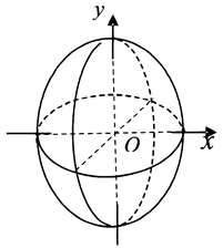 所围成的平面图形绕y轴旋转一周后,得到如图所示的几何体,称为椭球体.请类比应用祖暅原理求球体体积公式的做法,求出椭球体体积,其体积为______________.