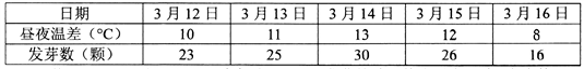 【题文】种子发芽率与昼夜温差有关.某研究性学习小组对此进行研究,他们分别记录了3月12日至3月16日的昼夜温差与每天100颗某种种子浸泡后的发芽数,如下表: