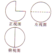 【题文】已知如图中的所有圆的半径都等于3,且该图形为某一空间几何体的三视图,则这个空间几何体的表面积为__________.