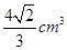 【题文】将一张边长为6 cm的纸片按如图l所示阴影部分裁去四个全等的等腰三角形,将余下部分沿虚线折叠并拼成一个有底的正四棱锥(底面是正方形,顶点在底面的射影为正方形的中心)模型,如图2放置.若正四棱锥的正视图是正三角形(如图3),则正四棱锥的体积是()