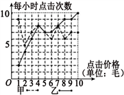 【题文】某搜索引擎广告按照付费价格对搜索结果进行排名,点击一次付费价格排名越靠前,被点击的次数也可能会提高,已知某关键词被甲、乙等多个公司竞争,其中甲、乙付费情况与每小时点击量结果绘制成如下的折线图.