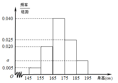 名男生,将他们的身高作为样本进行统计,得到如图所示的频率分布直方图.观察图中数据,完成下列问题.
