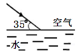 【题文】如图所示,一束光线与水平面成35°角斜射到水面上。已知入射光线的反射光线和折射光线相互垂直,则折射角为_______。