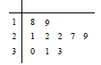【题文】如图是某公司10个销售店某月销售某产品数量(单位:台)的茎叶图,则数据落在区间