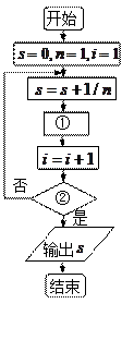 的值的一个程序框图,则图中执行框中的①处和判断框中的②处应填的语句是( )