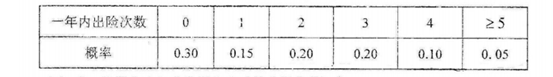 (单位:元),继续购买该险峰种的投保人称为续保人,续保人的本年度的保费与其上处度的出险次数的关联如下: