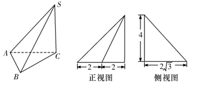 及其三视图中的正视图和侧视图如图所示,则该三棱锥