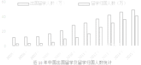 | B.我国出国留学及留学归国人数逐年增加,出国人数和回国人数之间的差距逐年缩小。可以预见,在未来几年,这样的发展趋势将持续下去。 |