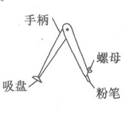 【题文】下图所示是一种新型圆规。它一脚的末端装有吸盘,是利用________的作用将其固定在黑板上的,另一脚末端的粉笔通过螺母固定。作图时,转动手柄便可在黑板上画出漂亮的圆,圆规在使用过程中相当于简单机械中的________(填“省力”或“费力”)杠杆。