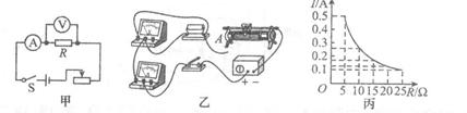 (2)实验中多次改变R的阻值,调节滑动变阻器的滑片,使电压表示数保持不变,记下电流表的示数,得到如图丙所示的电流,随电阻R变化的图像。
