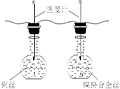 【题文】如图是“探究电流通过导体产生的热量与导体电阻关系”的实验装置,铜丝的电阻小于镍铬合金丝的电阻,铜丝和镍铬合金丝串联浸在相同质量和相同初温的煤油中,每一烧瓶里各插入一支温度计.通电一定时间后,可以看到