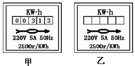 (2)所有用电器在没有工作时电能表的示数如图甲所示,请你在图乙中填上它们在工作5h后电能表的示数.