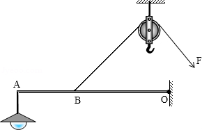 【题文】某剧组为拍摄需要,设计了如图所示的装置来改变照明灯的高度.轻质杠杆ABO可绕O点转动,在图中画出ABO所受阻力F