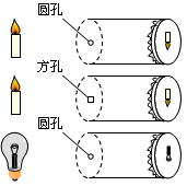 【题文】学习了光学知识后,爱动脑筋的小桐和小朵想自己探究小孔成像现象。如图所示,她们给三个空罐的底部中央分别打上一个圆孔和一个方孔,再用两片半透明的塑料膜蒙在空罐的口上。分别将小孔对着烛焰和灯丝,可以看到烛焰和灯丝通过小孔所成的像。