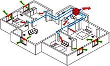 在人类经历了换风扇、空气净化器、中央空调等换气产品之后,中央新风系统(如图所示)开始备受消费者青睐,并得到了广泛使用和认可。新风系统由风机、进风口、排风口及各种管道和接头组成。安装在吊顶内的风机通过管道与一系列的排风口及风机排往室外,使室内形成负压,这样室外新鲜空气便经进风口进入室内,从而使室内人员呼吸到高品质的新鲜空气。
