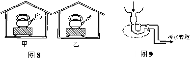【题文】如图8,两个相同的炊壶内装有同样多的水,此时都已沸腾。已知炉火的强度和房间内空气的湿度都相同,因此,可以判断出:房间甲的气温