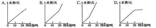 【题文】某市规定每户每月生活用水不超过20吨时,每吨价格为1.40元;当用水量超过 20吨时,超过部分每吨价格为2.10元。下图中能表示每月水费与用水量关系的示意图是( )。