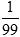 【题文】有一批零件,经检验后,100个合格,1个不合格。不合格率为( )。