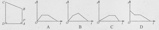 【题文】如图,在四边形ABCD中,动点P从点A开始沿ABCD的路径匀速前进到D为止,在这个过程中,三角形APD的面积随时间t的变化关系,用图象表示正确的是( )。