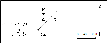 (2)“世纪大道”与解放路垂直相连,在解放路西、人民路北与人民路相距1000米,请作图表示出“世纪大道”.