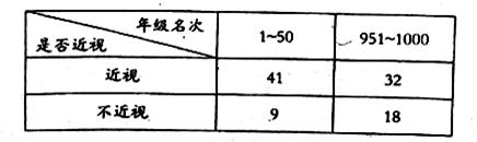 (Ⅱ)学习小组成员发现,学习成绩突出的学生,近视的比较多,为了研究学生的视力与学习成绩是否有关系,对年纪名次在1~50名和951~1000名的学生进行了调查,得到如下数据: