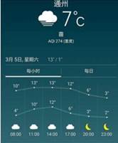 【题文】中国天气网2016年3月4日晚六时通过手机发布的3月5日通州区天气预报的折线图(如图),其中上面的折线代表可能出现的从高气温,下面的折线代表可能出现的最低气温.