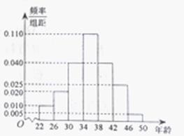 名男性的年龄情况对应的频率分布直方图如下: