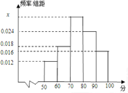 份试卷进行成绩分析,得到数学成绩频率分布直方图(如图所示),其中成绩在