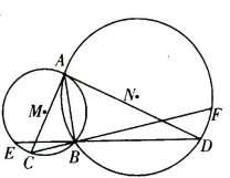 如图所示,圆M与圆N交于A,B两点,以A为切点作两圆的切线分别交圆M和圆N于C,D两点,延长DB交圆M于点E,延长CB交圆N于点F.已知BC=5,DB=10.