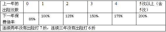 【题文】从2016年1月1日起,湖北、广东等18个保监局所辖地区将纳入商业车险改革试点范围,其中最大的变化是上一年的出险次数决定了下一年的保费倍率,具体关系如下表: