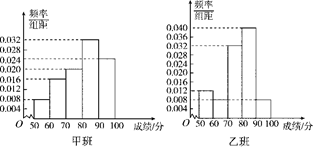 【题文】某中学将100名高一新生分成水平相同的甲、乙两个“平行班”,每班50人.陈老师采用A,B两种不同的教学方式分别在甲、乙两个班进行教改实验.为了了解教学效果,期末考试后,陈老师对甲、乙两个班级的学生成绩进行统计分析,画出频率分布直方图(如下图).记成绩不低于90分者为“成绩优秀”.