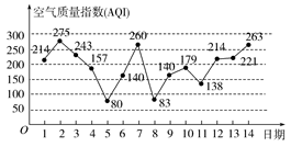 【题文】如图所示是某市2016年2月1日至14日的空气质量指数趋势图,空气质量指数(AQI)小于100表示空气质量优良,空气质量指数大于200表示空气重度污染,某同志随机选择2月1日至2月12日中的某一天到达该市,并停留3天.