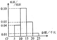 (2)若规定网购金额超过15千元的顾客定义为“网购达人”,网购金额不超过15千元的顾客定义为“非网购达人”;若以该网店的频率估计全市“非网购达人”和“网购达人”的概率,从全市任意选取3人,则3人中“非网购达人”与“网购达人”的人数之差的绝对值为