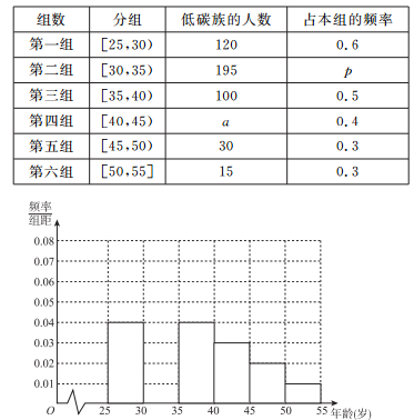 人进行了一次生活习惯是否符合低碳观念的的调查,若生活习惯符合低碳观念的称为“低碳族”,否则称为“非低碳族”,得到如下统计表和各年龄段人数频率分布直方图:
