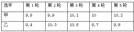 【题文】甲、乙两位选手参加射击选拔赛,其中连续5轮比赛的成绩(单位:环)如下表: