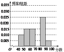 【题文】某校从参加高一年级期中考试的学生中随机抽出60名学生,将其数学成绩(均为整数)分成六段[40,50),[50,60),...,[90,100]后得到如图所示的部分频率分布直方图.观察图形的信息,回答下列问题: