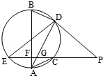 如图,EP交圆于E,C两点,PD切圆于D,G为CE上一点且PG=PD,连接DG并延长交圆于点A,作弦AB垂直EP,垂足为F.