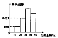 个同学进行调查,结果显示这些学生的支出金额(单位:元)都在[10,50],其中支出金额在[30,50]的学生有134人,频率分布直方图如图所示,则