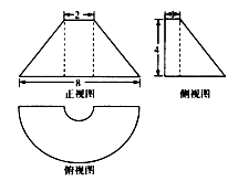 【题文】如图是某几何体的三视图,正视图是等腰梯形,俯视图中的曲线是两个同心的半圆组成的半圆环,侧视图是直角梯形,则该几何体的体积等于( )