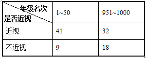 关系,对年级名次在1~50名和951~1000名的学生进行了调查,得到如下数据: