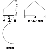 【题文】某几何体的三视图如图所示,其俯视图是由一个半圆与其直径组成的图形,则此几何体的体积是( )