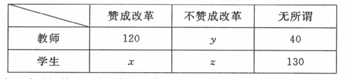 在全体师生中随机抽取1名“赞成改革”的人是学生的概率为0.3,且x=2y.