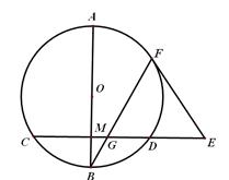如图,已知AB是⊙O的直径,弦CD与AB垂直,垂足为M,E是CD延长线上的一点,且AB=10,CD=8,3DE=4OM,过F点作⊙O的切线EF,BF交CD于G
