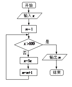 【题文】执行如图所示的程序框图,若输入的x的值为3,则输出的n的值为______.